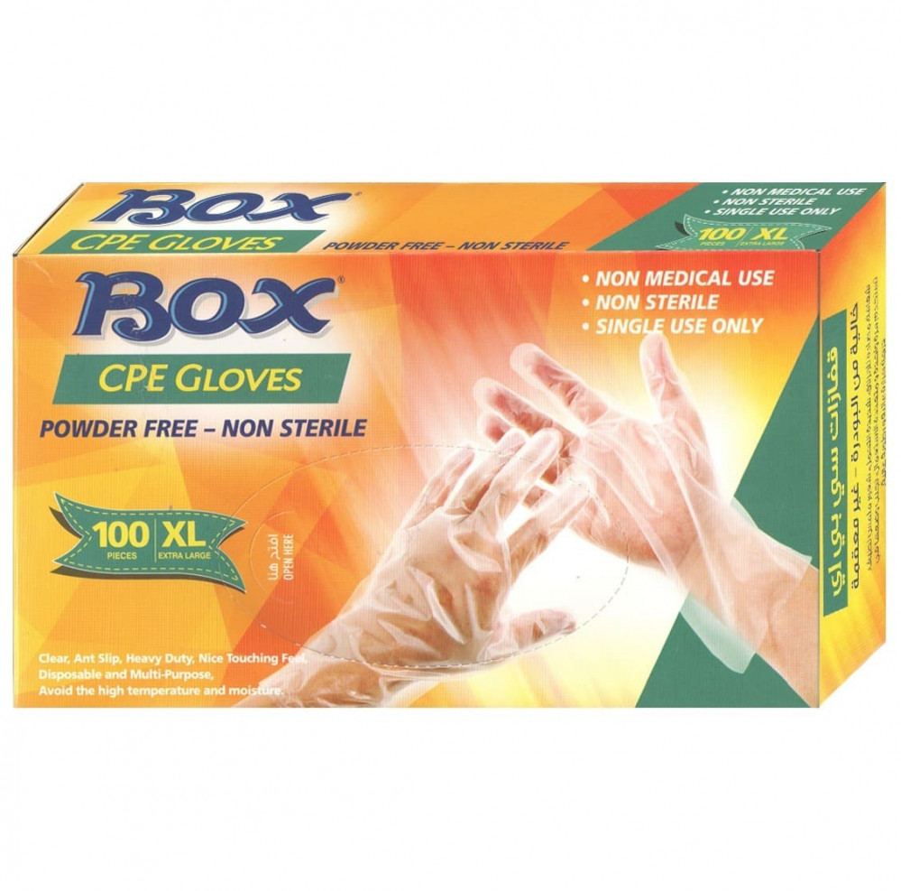 بوكس قفازات سي بي إي خالية من البودرة غير معقمة 100قلفز BOX CPE GLOVES XL
