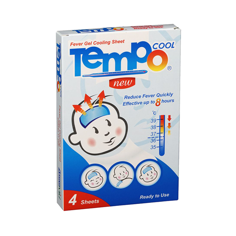 تيمبو كول انفانت كمادات خافضة جل للحرارة للرضع 4 قطع كمادة جل جاهزة خافضة للحرارة بفاعلية حتى 8 ساعات تحتوى على مركب جيلاتينى مع البوليمر مع نسبة عالية من الماء يتبخر عند ملامستة للجلد مما يساعد على خفض درجة حرارة الجسم بأمان وفاعلية ولا تحتوى على مركبات دوائية