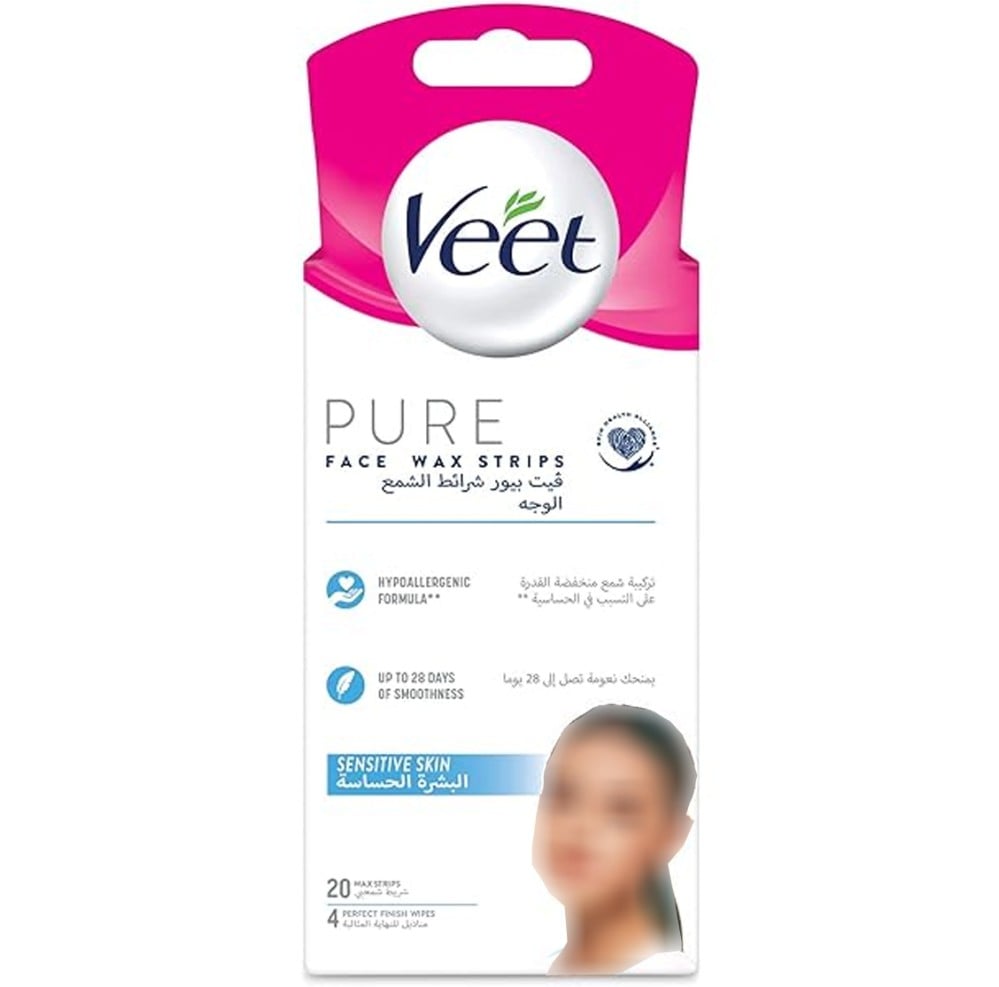 فيت شرائط الشمع بيور لازالة شعر الوجه 20 شريط بفضل شرائح يت النقية الشمعية ، تركيبة لا تسبب الحساسية ، يمكنك ارتداء ما تريد وقتما تريد بثقة في نتائج مثالية. اشعري بتحسن مع شرائح الشمع المثالية التي تخلق نعومة تدوم حتى 28 يومًا.