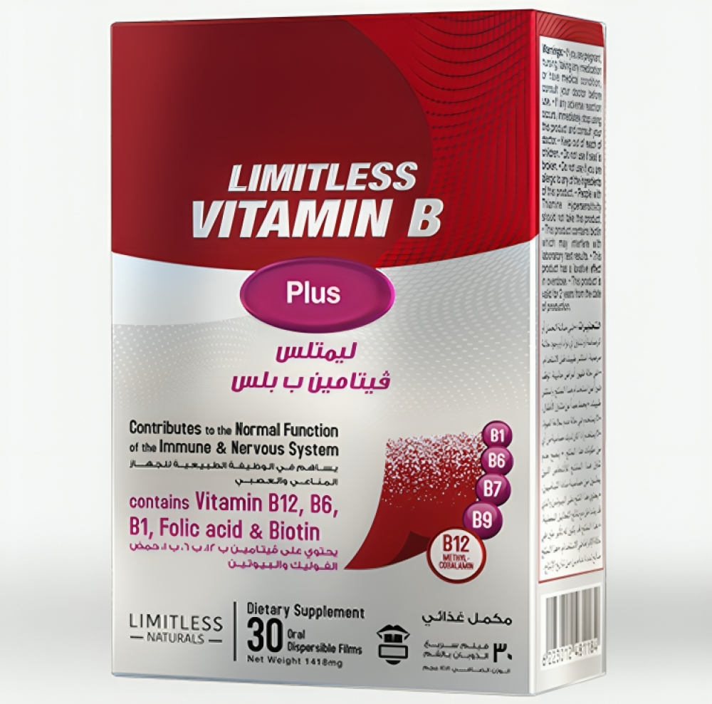 ليمتلس فيتامين بي بلس لصحة الجهاز المناعي والعصبي 30 فيلم سريع الذوبان بالفم