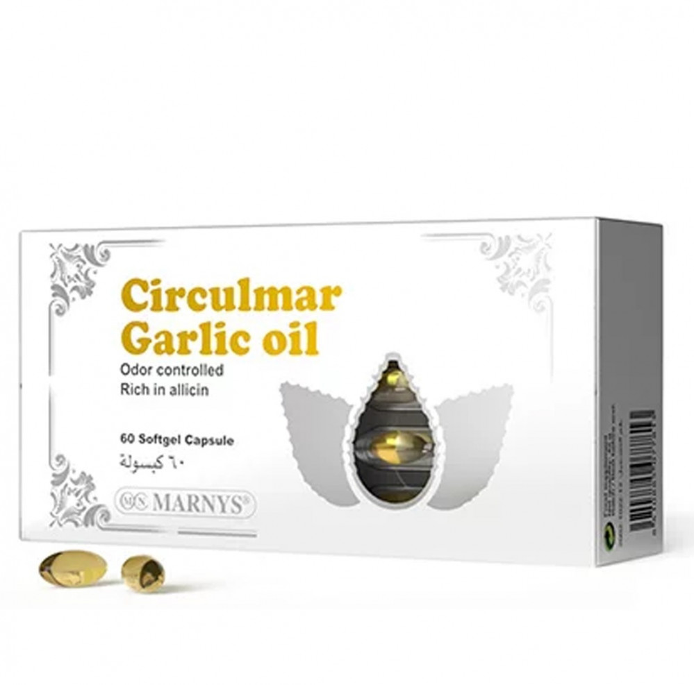 مارنيز سركلمار زيت الثوم بدون رائحة غني بالاليثين مكمل غذائي 60 كبسول MARNYS CIRCULMAR GARLIC OIL يستفيد من خواص الثوم بدون رائحته القوية, كبسولات ثوم منزوعة الرائحة وغنية بالأليسين.