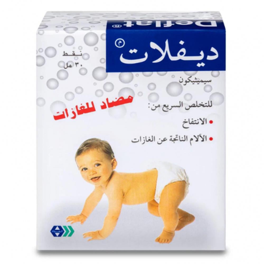 ديفلات قطرات سيميثيكون للتخلص من الغازات 30 مل بمادة السيميثيكون الفعالة لعلاج آلام البطن الناتجة عن تراكم الغازات، يساعد الجسم على التخلص من الغازات الزائدة والمزعجة، ويستخدم أيضاً قبل تصوير الجزء العلوي من البطن بالموجات الفوق صوتية.