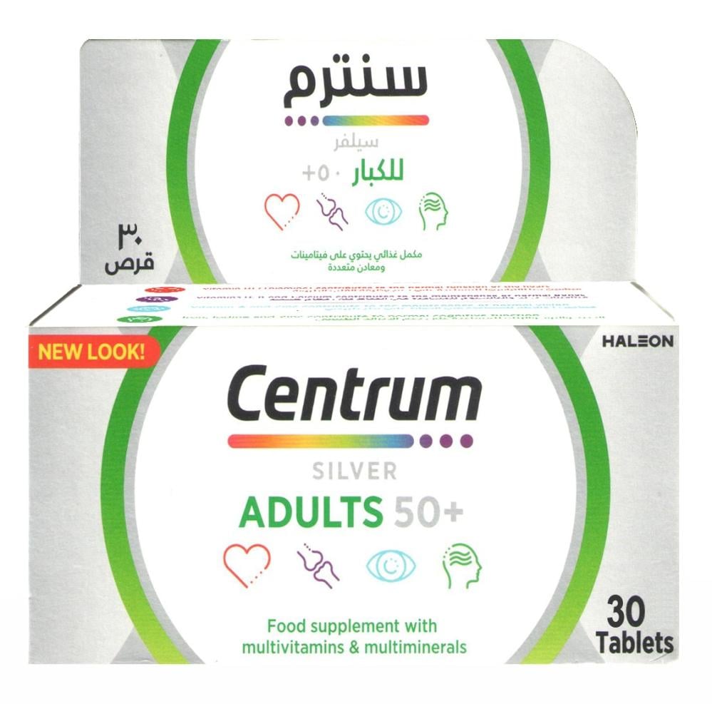 سنتروم الفضي ملتي فيتامين مع لوتين 30 حبة CENTRUM SILVER WITH LUTEIN MULTI VITAMIN توفر الفيتامينات المتعددة العناصر الغذائية الرئيسية للمساعدة في دعم صحة قلبك ودماغك وعينيك. بالإضافة إلى ذلك ، تحتوي التركيبة على عناصر غذائية تساعد في دعم وظيفة العضلات. أقراص Centrum Silver هي تركيبة متعددة الفيتامينات والمعادن خاصة للبالغين من سن 50+. يتم دمجه مع اللوتين الذي يساعد في الحفاظ على صحة البصر
