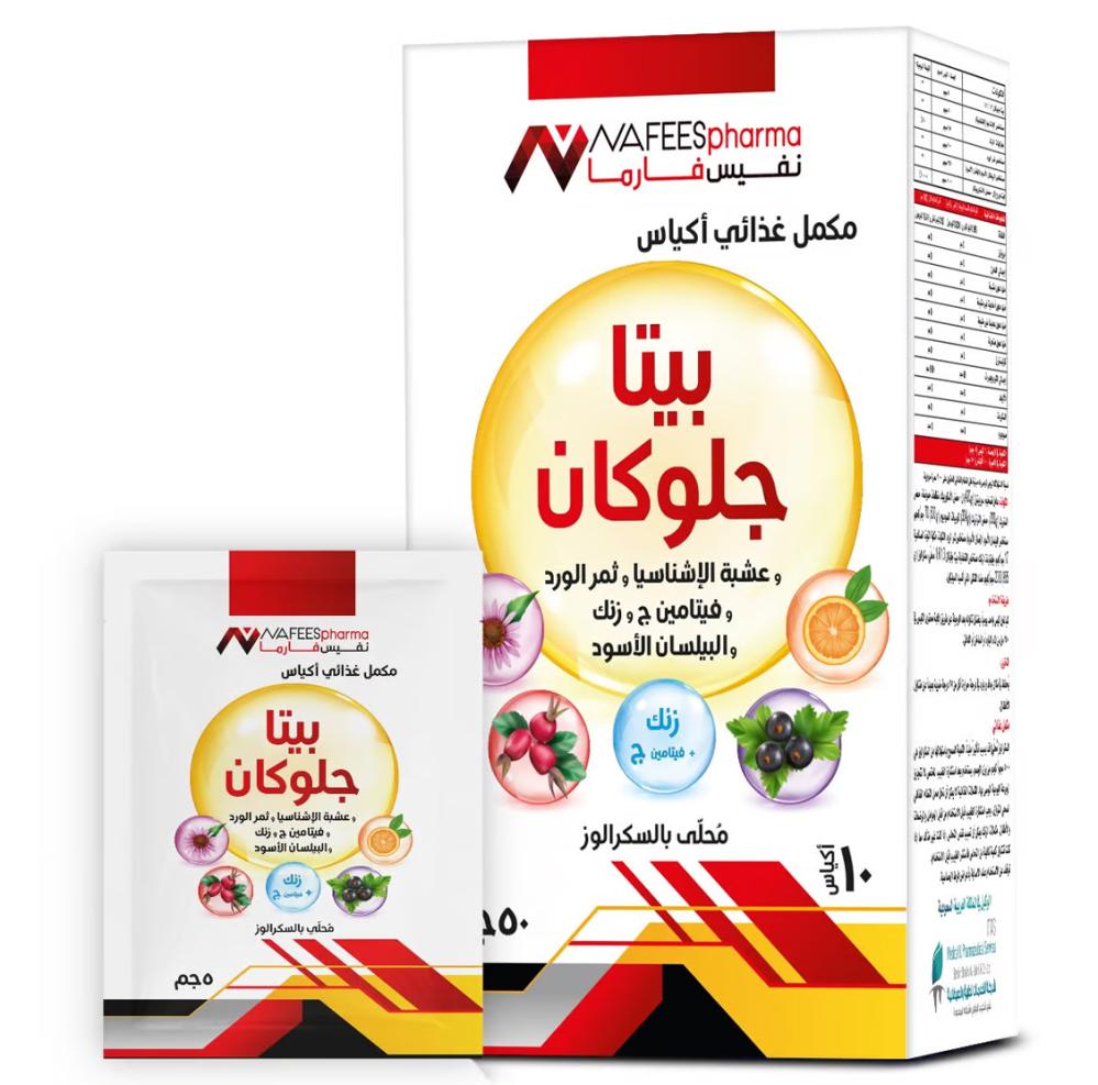 بيتا جلوكان مكمل غذائي اكياس عشبة الاشناسيا وثمرة الورد وفيتامين ج وزنك والبيلسان الاسود 50 جم من نفيس فارما