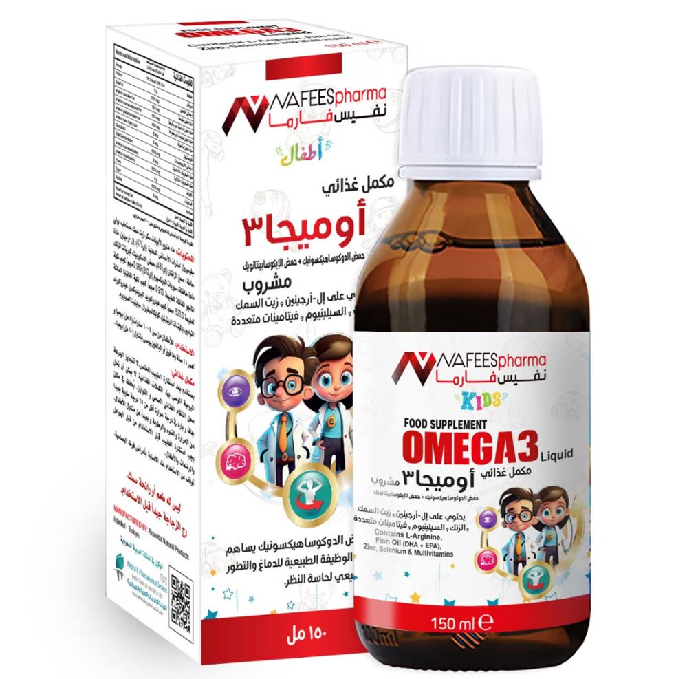 اوميجا 3 للطفال مكمل غذائي مشروب بالإل ارجينين وزيت السمك والزنك والسيلينيوم وفيتامينات متعددة 150 مل من نفيس فارما