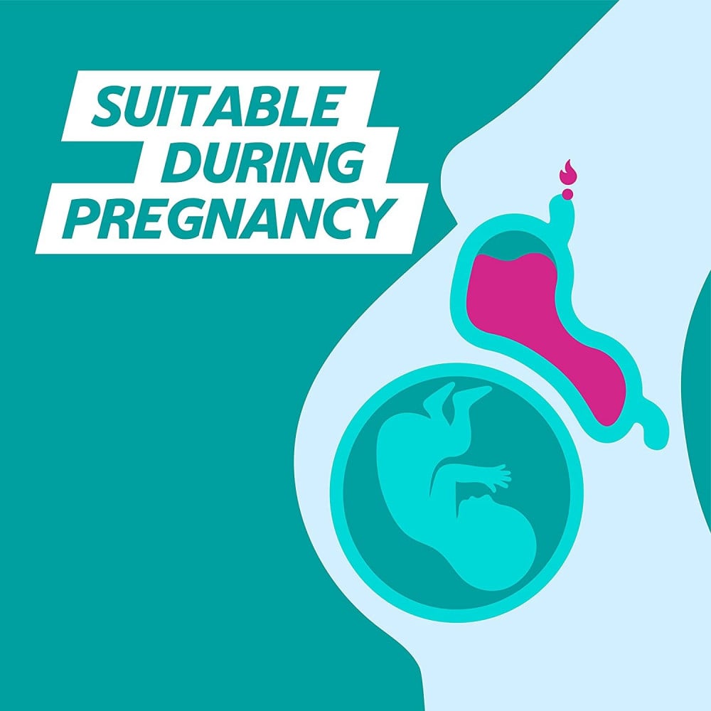 A double-acting liquid with a peppermint flavor that provides fast, soothing and long-lasting relief from the pain and discomfort of heartburn and acid indigestion. It contains three main ingredients: sodium alginate, calcium carbonate, and sodium bicarbonate. They all work to provide a protective layer over the acid inside the stomach, which prevents it from bloating, which usually causes pain and discomfort.