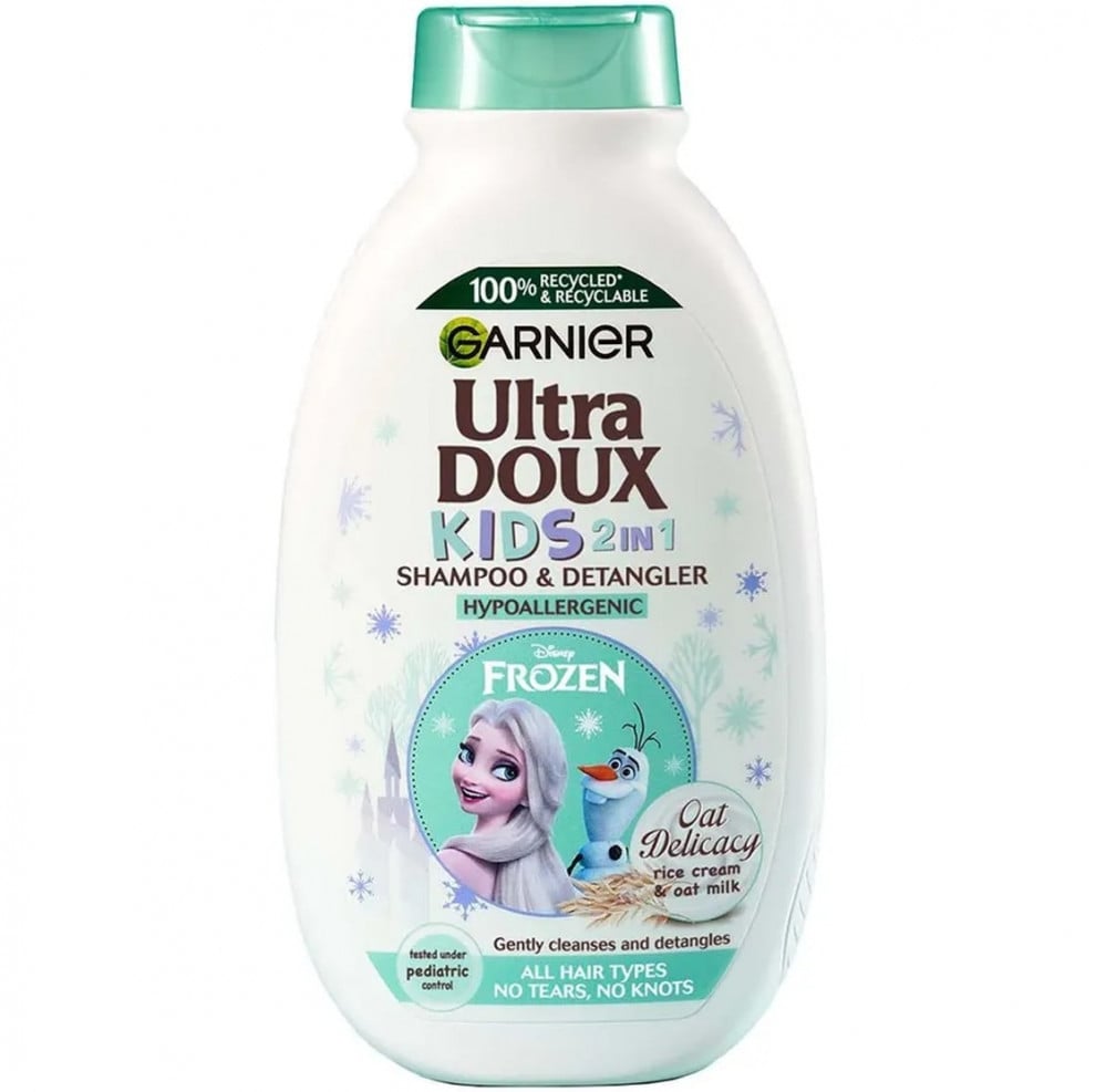 Garnier Ultra Doux Kids Shampoo and Conditioner 2 in 1 Oat Softness 400 ml Discover the Garnier ultra doux kids 2 in 1 collection in partnership with Disney. Our Frozen Oatmeal Inspired Shampoo & Detangler is the perfect way to get rid of knotted hair! This allergy-friendly shampoo and detangler has been tested under child control and can be used on all hair types.