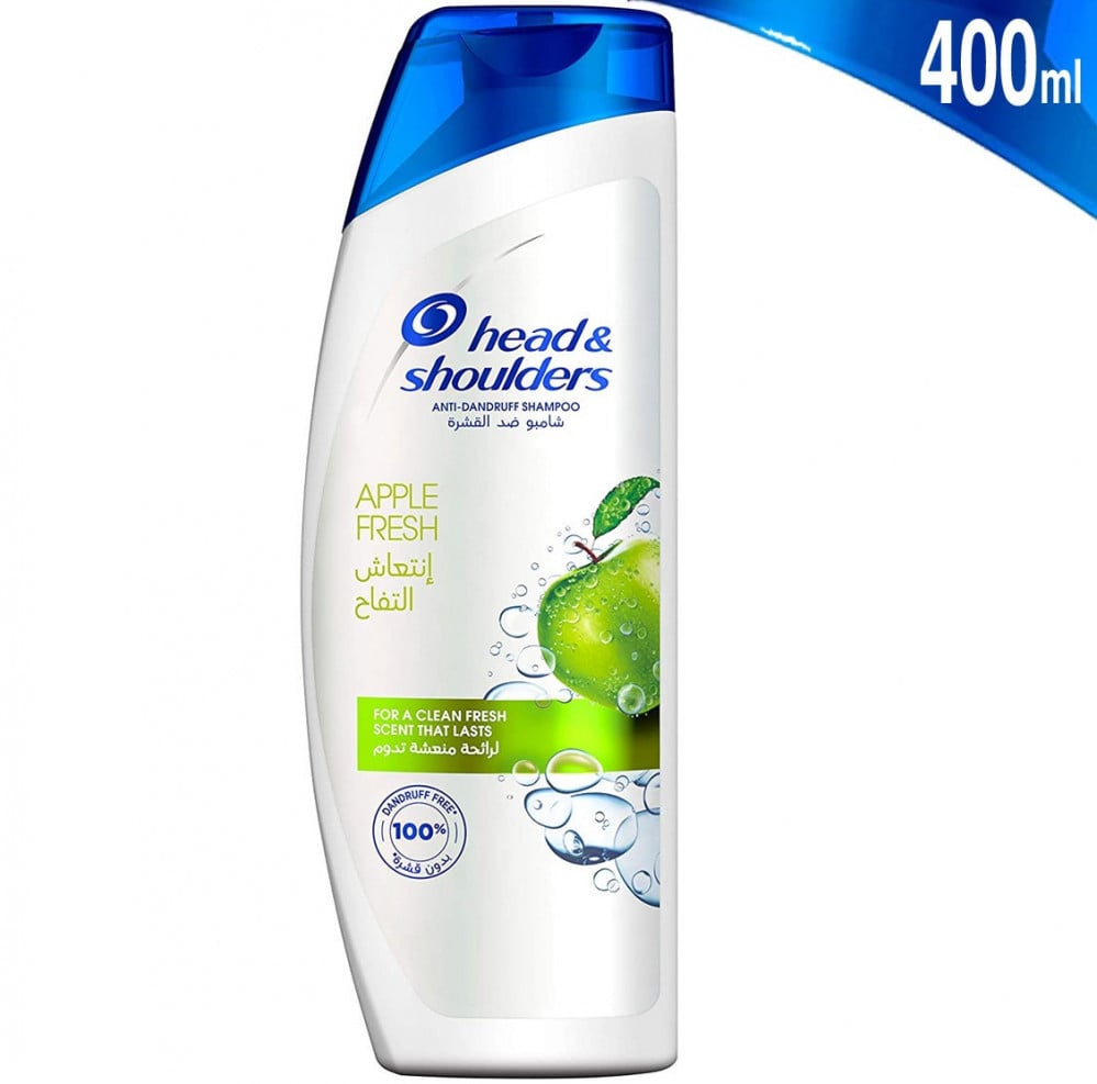 Head & Shoulders Anti Dandruff Shampoo Apple Fresh 400ml Editorial Review Healthy hair starts with a healthy scalp. Amp Shoulders Green Apple Shampoo's advanced formula relieves irritation, dryness, and itching of the scalp and helps prevent flaking while improving hair and scalp health. It cleanses your hair and scalp and leaves a refreshing green apple scent. Gentle and pH balanced for daily use even on colored or curly hair. For a fresh and clean scent. disinfection