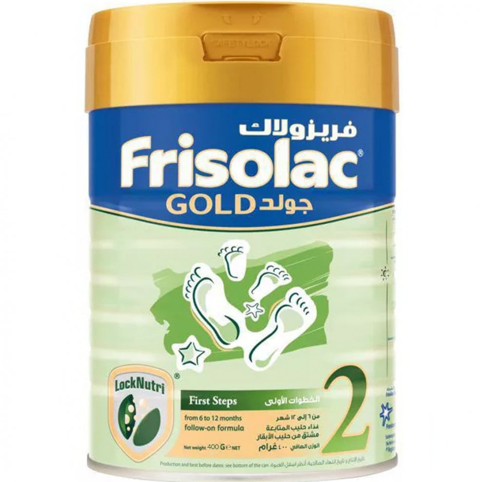 Frisolac Gold Baby Milk No. 2 - 400 grams FRISOLAC GOLD FIRST STEPS Suitable for children under one year old, Frisolac Step 2 plays an important role in your children’s growth and development. Frisolac formula milk contains 57.3g of carbohydrates and 15g of protein, providing 462kcal of energy to your baby.